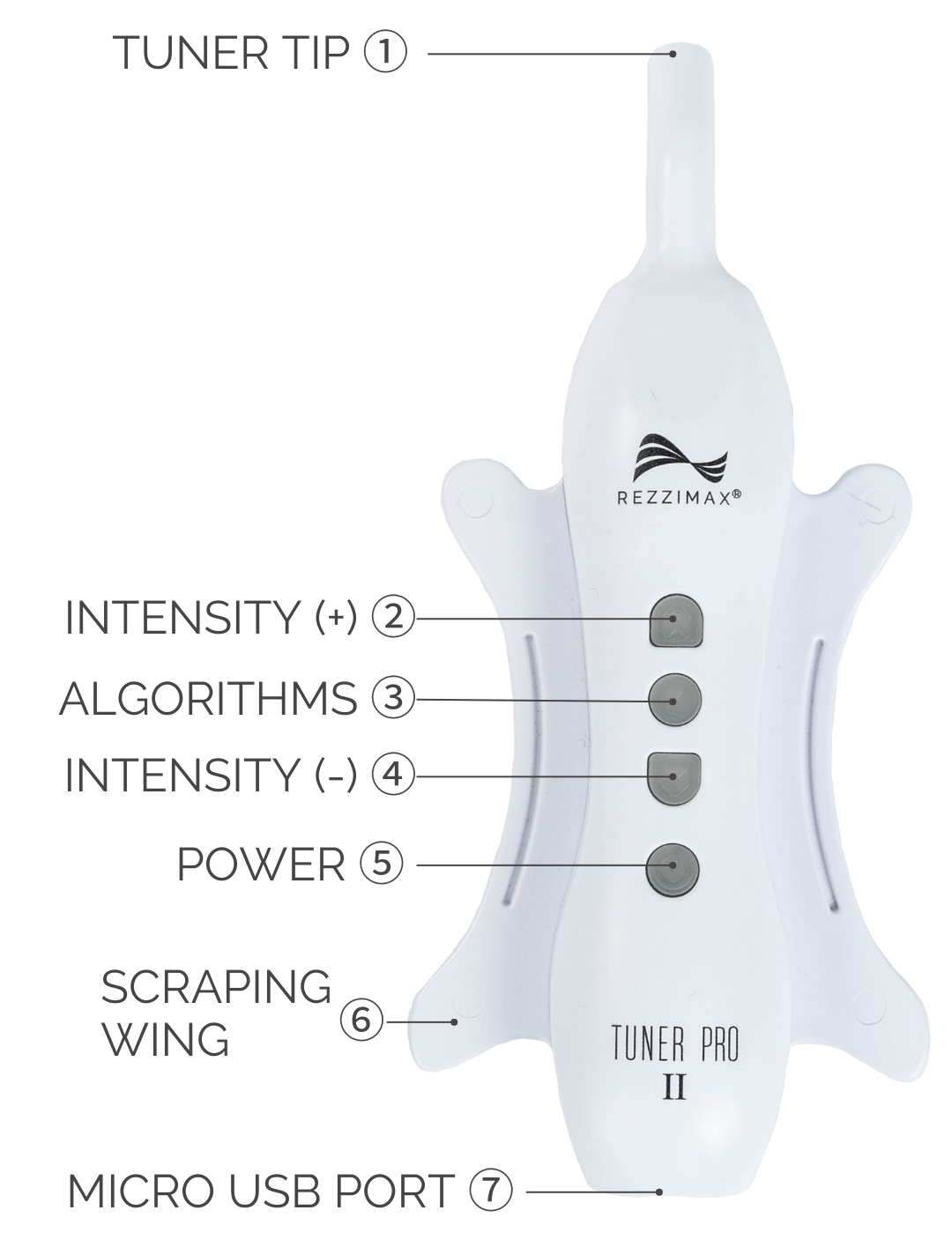 ① TUNER TIP - Pressure points or to attach Tuner accessories
